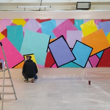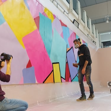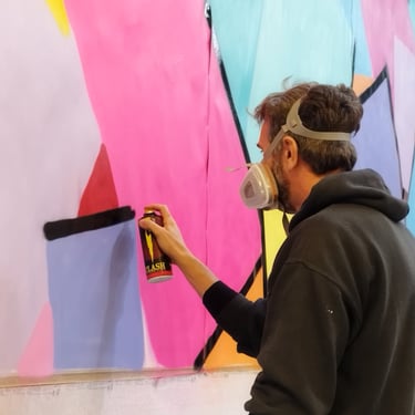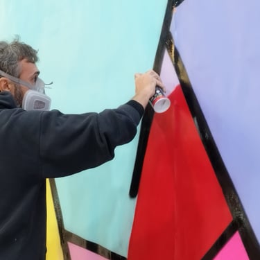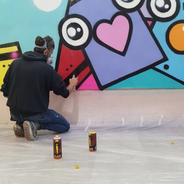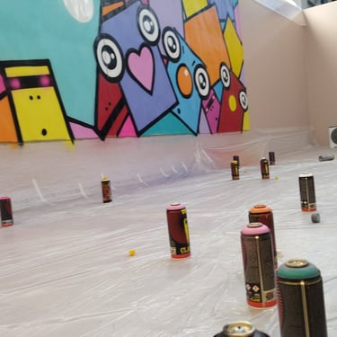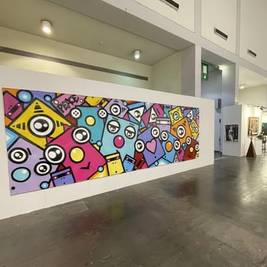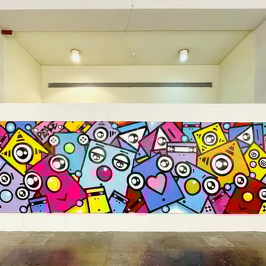 Mister Clay created a large-scale (2 x 7 meters) reproduction of his “Allucinati” at the gallery Artenetwork Orler in Venice. These characters, with wide eyes, are designed to bring a smile to the viewer through their bright colors. The work was later exhibited at Arte Padova 2023.